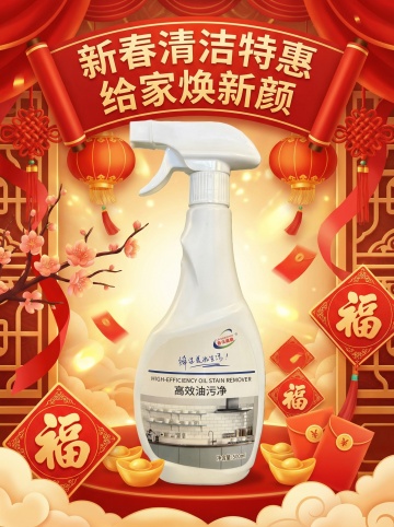 撕纸风与剪纸风融合,国潮元素跃然纸上,喜庆红金配色搭配拼贴手法,传递新年焕新、洁净到家的节日氛围。