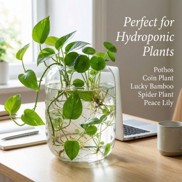 简约现代风格绿植组合海报,六个不同种类的室内绿植盆栽,包括龟背竹、琴叶榕、多肉植物组合、散尾葵、橡皮树和仙人掌,分别种植在黑色哑光金属盆、白色陶瓷异形盆、灰色水泥质感高脚盆、木质托架盆、编织纹理盆和粗陶素烧盆中,整体采用柔和的浅灰色背景,顶部单侧柔光照射形成轻微阴影,绿植叶片色彩鲜亮饱和,展现自然生机,构图采用上下两排均匀分布,每个盆栽间距适中,保持清晰的视觉层次,突出绿植的形态美感与不同花盆材质的质感对比,营造清新雅致的室内园艺氛围。