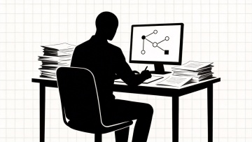 一个身着深色西装的商务人士站在由深蓝色立体方块构成的巨大向上箭头顶端,眺望远方的繁华城市全景,背景是明亮的蓝天白云,整体呈现出一种积极向上、充满希望的氛围。箭头的设计富有科技感和立体感,由许多小方块拼接而成,表面光滑,有光泽感。城市的建筑物密集而高耸,展现出现代都市的繁荣景象。