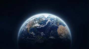 科技感十足的3D地球,未来感光影环绕,虚拟现实粒子效果,展现广阔宇宙空间与星球细节。