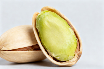 清新绿调背景,轻拟物风呈现开壳开心果,浮雕质感突出自然纹理,实景感十足,传递清爽柔和的舒适视觉体验。