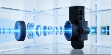白色背景上,由蓝色半透明渐变线条构成的抽象科技感图案,线条呈现出波浪状的流动形态,点缀着发光的蓝色光点,整体画面简洁、现代,具有未来感和科技感,线条和光点的排列形成了富有节奏感的视觉效果。