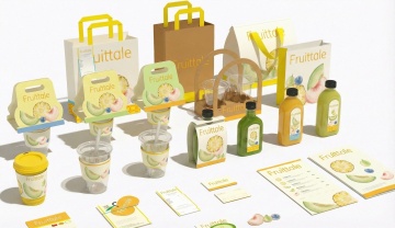 透明PET材质饮料瓶,瓶身呈柔和曲线造型,瓶盖为黑色螺旋盖,瓶身下半部分渐变色彩(可尝试清新蓝、活力橙、静谧绿等不同配色),瓶身中央有立体感的水果图案(如青柠、葡萄、西瓜等不同样式水果),水果表面带有水珠和气泡效果,背景为纯净浅色,整体画面简洁清爽,突出产品主体,具有现代饮料包装的设计感和吸引力。