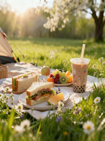 清新自然的轻拟物风三明治,搭配水彩质感的背景与拼贴式绿植花卉,营造出柔和舒适的实景感,传递春日清爽氛围。