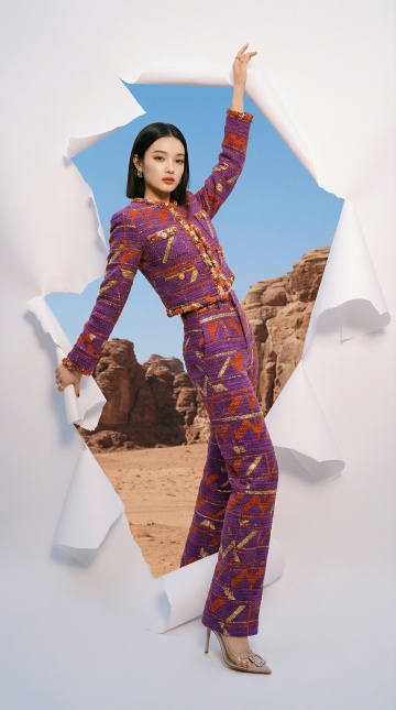国潮风旗袍,融合中式感与时尚剪裁,黑色面料凸显优雅复古,竹影红墙衬托东方韵味。