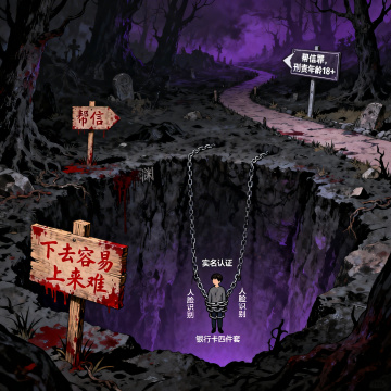卡通感插画风,拟人化人物手持放大镜探索机械齿轮与盾牌符号,扁平设计搭配噪点纹理,呈现科技与安全主题的创意视觉。