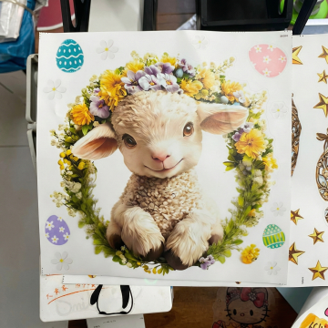 清新描边风设计,几何树与羊简约组合,自然生态主题。