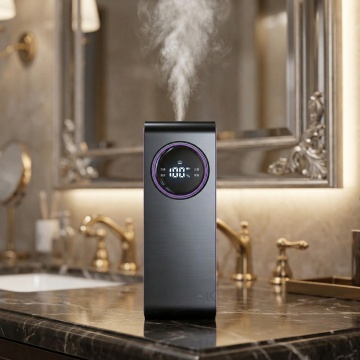 现代简约风格客厅,融合科技感智能中控与质朴木纹材质,光影交错间展现轻拟物设计美学,营造舒适温馨的居家氛围。