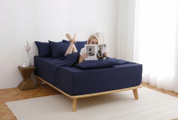 一张温馨的卧室场景,中央是一张铺着棕色床垫的床,床垫表面柔软舒适,带有自然的纹理。阳光透过窗户洒在床垫上,形成温暖的光斑。床头柜上摆放着一盏柔和的台灯和一盆绿色植物,整体色调温暖柔和,营造出舒适、放松的居家氛围。