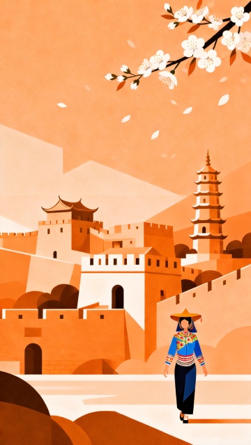新国风插画,清新唯美,浪漫樱花点缀,桥塔相映,节日氛围浓厚