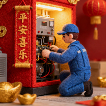 软3D风卡通机器人持“春节不打烊”横幅,融合国潮元素与鎏金质感,喜庆感十足,科技感与传统年味交织,烟花金币环绕,传递节日祝福与营业信息。
