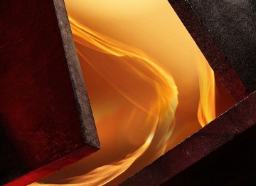 深邃暗红色背景,大量留白,底部边缘燃烧着熊熊烈火,火焰呈现出明亮的橙红色和黄色,带有清晰的火焰纹理和动态燃烧感,火星和细小的火焰颗粒在空中飘散,营造出热烈、炽热且略带神秘的氛围,整体画面具有强烈的视觉冲击力和动态感。