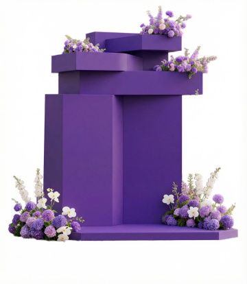 3D渲染风格的展台场景,画面中央有一个圆形的白色展台,展台周围环绕着大量蓬松、柔软的淡紫色云朵,云朵呈现出棉花糖般的质感,边缘柔和,带有细腻的纹理。背景是渐变的深蓝色天空,点缀着几缕轻薄的白色云彩,光线从云层间隙洒落,形成柔和的光束,照亮展台顶部,营造出梦幻、宁静且略带神秘感的氛围。整个场景色彩和谐,以紫色和蓝色为主色调,光影过渡自然,构图采用对称美学,展台位于画面中心,成为视觉焦点,周围的云朵和天空元素围绕展台展开,形成平衡的视觉引导线,整体画面干净整洁,空间感强。