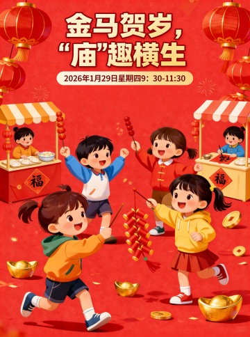 软3D风国潮新春海报,萌牛主角搭配粘土质感卡通人物,鎏金祥云与节日元素营造喜庆温馨氛围,趣味十足的游园场景传递全家共乐的温暖年味。