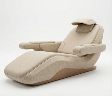 全景构图,极简风格的量子生物实验室内部,以哑光白色和冷调冰蓝为主色调,光线来自悬浮式环形LED无影灯与智能调光玻璃墙透入的柔和天光,空气中悬浮着纳米级检测粒子的微弱蓝光轨迹。地面是无缝一体的环氧树脂自流平地面,形成完美镜面反射,将天花板的几何照明阵列与下方设备精确对称。中央是模块化悬浮实验台,台面采用航空级陶瓷材质,整齐排列着带全息显示功能的智能玻璃器皿、液态金属质感的精密移液器,以及散发着生物荧光的培养皿。实验台两侧是钛合金框架的悬浮座椅,配有可自动调节的记忆棉靠背。左侧墙面为智能储物系统,透明纳米晶玻璃柜门内整齐排列着低温保存的样本管,每个管体都有独立的量子标签投影;右侧是嵌入式基因测序仪与蛋白质分析仪,操作界面投射在半透明亚克力操作板上。远处可见带磁悬浮轨道的自动化实验机械臂正在进行精确操作,空间采用2:3黄金分割布局,所有设备呈现0.1mm级的对齐精度,整体氛围冷静、精准而富有未来感。