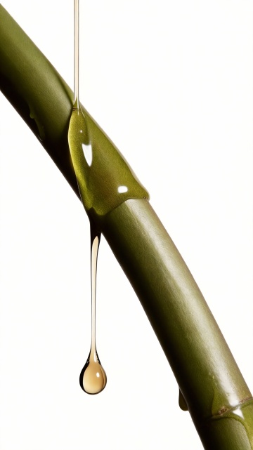 微距俯拍视角,金黄透明的橄榄油从一个青铜小壶的细嘴中缓缓滴落,形成细长的液柱连接着下方即将坠落的、圆润饱满的油滴,表面泛着丝绸般的光泽,内部可见细小气泡缓慢上升,滴落的油滴在下方平静的橄榄油表面激起层层向外扩散的同心圆涟漪,涟漪边缘折射出彩虹般的微弱光谱,液体呈现出温暖的琥珀色调,背景是粗糙的原木纹理,侧上方45度角的柔光穿透油滴形成内部光斑,强调油滴的粘稠质感和高光反射,一滴油正悬停在即将分离的临界点,拉丝的油膜在空气中形成优美的曲线。