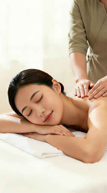 轻拟物风融合油画质感,柔和光影勾勒温馨按摩场景,实景感十足,传递舒适疗愈氛围。