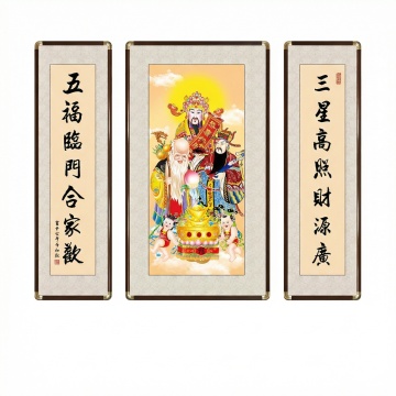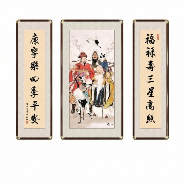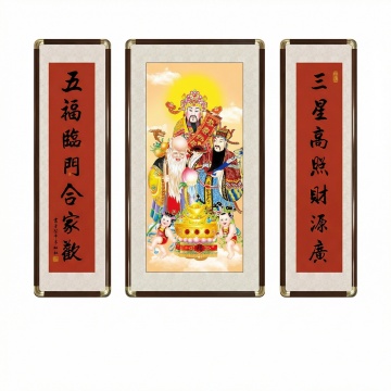 融合中式古典与喜庆元素,呈现传统年画的吉祥氛围和招财进宝的美好寓意。