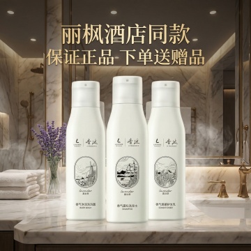力士蓝风铃洗发水产品主视觉,暖色系森系风格海报。右侧为产品主体,占据画面右部约2/5空间,瓶身30°倾斜放置于木质托盘上,瓶身洁净有细微光泽。左侧为文字区域,背景有渐变光感。主标题“力士蓝风铃 自然森呼吸”,采用优质衬线体,字形舒展,笔触温暖,整体气质清新文艺;副标题“植物精油配方 48小时持久留香”,使用中等粗细无衬线体;核心卖点“天然蓝风铃精华 | 氨基酸洁净 | 无硅油配方”,以三行图标排列