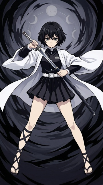 二次元动漫风格立绘,白色背景,一位身着红色与黑色为主色调华丽服饰的女性角色,她有着金色的长发,头戴带有红色宝石的黑色发冠,眼神锐利而自信。上身为黑色紧身露肩上衣,点缀金色花纹,外披红色金边披风,披风边缘有毛绒装饰。下身为高腰红色短裙,裙摆呈不规则层叠设计,搭配黑色过膝长靴,靴筒有金色扣带。手中持有一把燃烧着红色火焰的长剑,剑柄华丽镶嵌宝石。整体造型充满力量感与高贵气质,线条流畅,色彩对比强烈,光影效果突出,人物姿态挺拔,微微侧身,一只手握着剑柄置于身侧,另一只手自然下垂,披风随风飘动,展现出动态的美感,细节丰富,服饰质感细腻,具有浓厚的奇幻战斗风格。