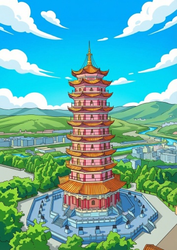 中式古典插画风,清新雅致的庭院景观,石径通幽,绿树成荫。