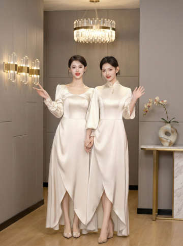 中式旗袍与西式婚纱相映成趣,刺绣细节展现优雅浪漫,国潮风融合现代美感。
