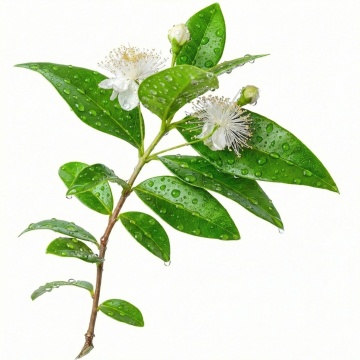 写实风格摄影,不同场景下的金银花背景,画面以金银花藤蔓为主体,白色和淡黄色的花朵优雅绽放,细长的花蕊自然舒展,深绿色的卵形叶片饱满有光泽,表面带有晶莹的水珠,藤蔓呈红褐色,整体构图遵循三分法,背景为虚化的绿色植物营造自然景深,光线柔和明亮,呈现出清新、生机盎然的氛围,色彩真实自然,细节清晰,突出金银花的自然美感与植物纹理。