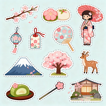 纯色背景上,六个造型完全不同的樱花图案系列素材集合,保持简约现代的扁平设计风格,每个樱花图案均采用粉色系配色,线条简洁流畅,花蕊细节精致,整体呈现规整排布的视觉效果,每个樱花图案具有独特的花瓣形状和花蕊设计,既保持系列统一性又各具特色,设计感十足,适合作为装饰元素或图案素材使用。