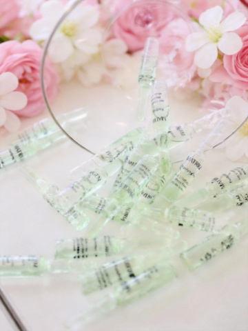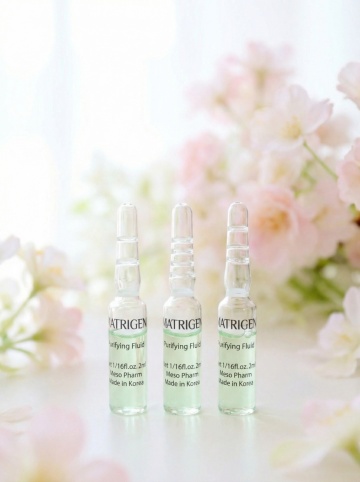 超写实主义风格,六个不同配色、不同样式、不同材质的精华瓶,在纯白色背景上呈整齐排列。每个精华瓶内装有晶莹剔透的液体,带有细腻气泡和流动质感,光影效果突出,高光和阴影过渡自然,展现出玻璃或塑料容器的光滑表面与液体的透明感,整体构图平衡对称,视觉层次分明,突出产品的高端质感与纯净特性。