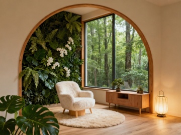 3D风与重拟物结合,虚拟自然融入室内,毛发生长质感的绒椅与面料风地毯营造温馨静谧氛围,简约主义空间透出清新舒适感。