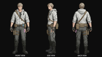 赛博朋克风3D角色,未来感科技金属设计,霓虹灯照亮夜景,展现冷酷与力量。