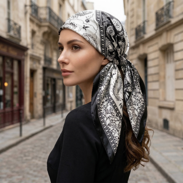 优雅复古风丝巾搭配,融合中式刺绣元素与商务时尚感,展现精致面料质感与经典配色,尽显女性知性魅力。