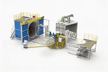 科技感十足的3D工业机械装置,金属质感强烈,重拟物风格呈现精密结构,展现现代制造美学。