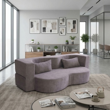 俯瞰视角,极简主义风格客厅以深邃的墨黑与温润的原木色为基调,倾斜45度的构图展现出几何切割般的空间层次感。清晨的冷蓝色光线从整面无框玻璃墙斜射而入,在深灰色微水泥地面上投下窗格的几何阴影,窗外是被薄雾笼罩的城市天际线剪影。中央悬浮着一个由黑色金属框架与烟熏玻璃台面构成的不规则多边形茶几,周围环绕着三张浅灰色模块式布艺单人沙发,每个沙发配有一个芥末黄皮质靠垫。右侧墙面是整面的胡桃木饰面板,内嵌线性LED灯带勾勒出隐藏式储物空间的轮廓。天花板采用悬浮式设计,中央垂挂着一个由12个不规则玻璃球体组成的艺术吊灯,在地面投射出破碎的光斑图案。空间角落摆放着一株大型琴叶榕,其深绿色叶片与整体冷色调形成鲜明对比。地面铺设着一块巨大的米白色羊毛手工编织地毯,边缘处有渐变的黑色几何图案。整体氛围呈现出一种冷静的奢华感,光线在不同材质间的反射创造出丰富的视觉层次,既保留了原空间的通透感,又通过色彩与光影的转变赋予其北欧极简的清冷美学。