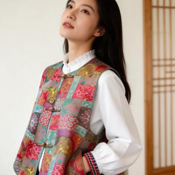 工笔风刺绣旗袍,水墨山水屏风映衬,古典优雅,文艺气息浓厚,尽显中式美学韵味。
