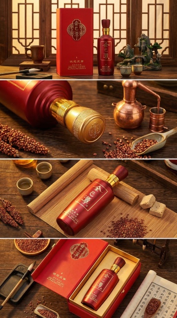 国潮风与重拟物风融合,鎏金瓶盖搭配紫金包装,置于青苔绿植间,清新优雅,唯美感十足,实景感强,传递自然与东方美学的和谐之美。