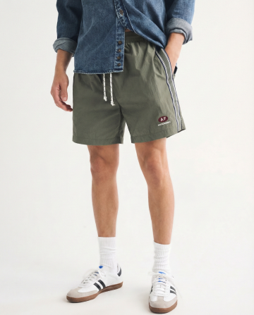 简约机能风短裤,融合时尚感与舒适感,多口袋设计凸显潮流细节,面料质感出众,搭配白色运动鞋,尽显都市休闲美学。