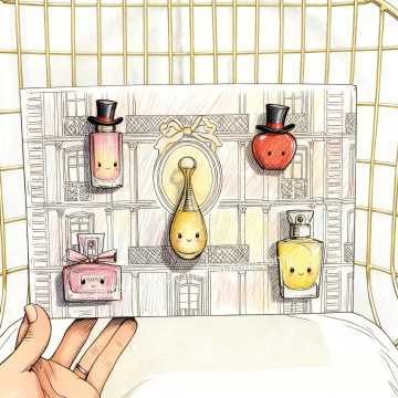 手绘插画风格,纯色背景,六个不同样式的香水系列素材集合规整排布。第一个香水瓶为圆润球形,透明瓶身搭配金色瓶盖,瓶内是淡粉色液体,背景为纯净的浅蓝色;第二个是方形棱角瓶身,磨砂质感,银色瓶盖,瓶内是淡绿色液体,背景为柔和的米色;第三个是细长圆柱形,透明瓶身,黑色瓶盖,瓶内是淡紫色液体,背景为优雅的浅灰色;第四个是不规则几何形瓶身,半透明材质,玫瑰金瓶盖,瓶内是淡黄色液体,背景为温暖的浅橙色;第五个是矮胖圆形瓶身,光滑透明,古铜色瓶盖,瓶内是淡蓝色液体,背景为清新的浅绿色;第六个是水滴形瓶身,晶莹剔透,银色瓶盖,瓶内是淡粉色液体,背景为温柔的浅粉色。每个香水瓶都保留了香水瓶的基本形态和液体、瓶盖等核心元素,通过变换瓶身造型、色彩搭配和背景颜色,形成风格统一又各具特色的系列设计,整体画面简洁明快,视觉层级清晰,信息传达高效。