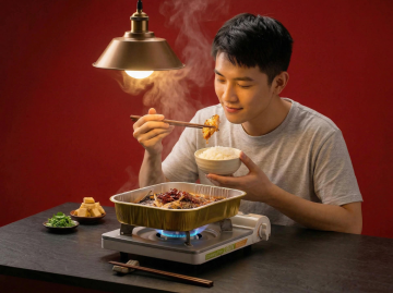 中式风味烤鱼,重拟物风呈现,油画质感光影交织,木质桌面上辣椒散落,蓝白瓷纹餐巾点缀,质朴而浓郁的东亚风情。