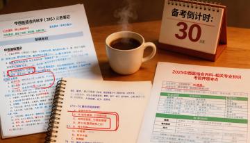 赛博朋克风视觉设计,融合霓虹光影与粒子特效,展现AI智能备考场景,科技感十足,突出未来医学教育的高效与冲击力。