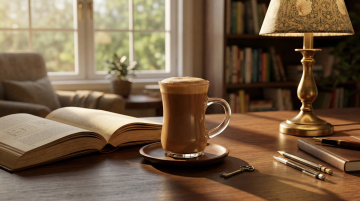 午后阳光在室内品尝咖啡