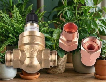 一张以不同画面的水龙头为背景的写实风格摄影照片,画面主体为一个亮银色的金属水龙头,水龙头正流出清澈的水流,水流在白色的洗手池表面形成柔和的水花和水痕。水龙头设计有精致的旋钮和弯曲的出水口,金属表面光滑且有细腻的反光,展现出良好的质感。背景中可以看到模糊的绿色植物和木质纹理,光线从左侧窗户射入,形成柔和的自然光效果,整体氛围清新、宁静、生活化,具有温暖的居家感。画面焦点清晰地落在水龙头和水流上,背景适当虚化,突出主体。