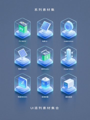 未来感与科技感交织的微缩艺术风设计,清透玻璃质感搭配软3D造型,展现智能充电场景,蓝色光效呼应新能源主题。