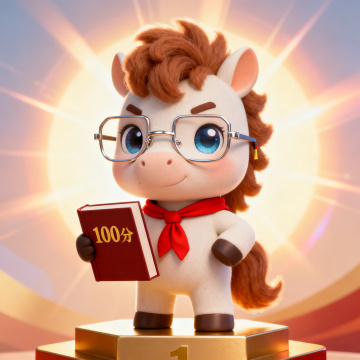 软3D风格萌马拟人形象,身着国潮红衣,手持春联,喜庆卡通感十足,传递新春祝福。