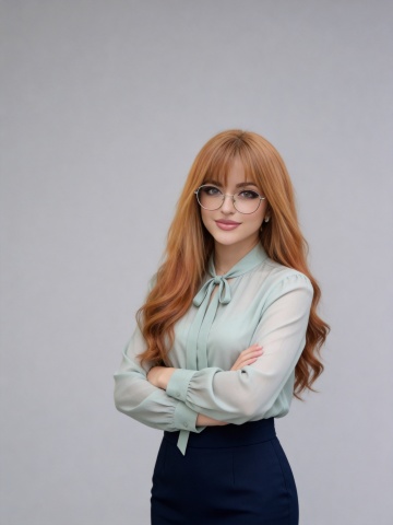 实景感与柔和光影交织,优雅女性身着亚麻衬衫与白色半裙,坐于深蓝绒椅,手持蓝气球,展现清新时尚与舒适质感,传递商务与生活美学的平衡。
