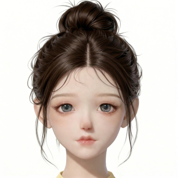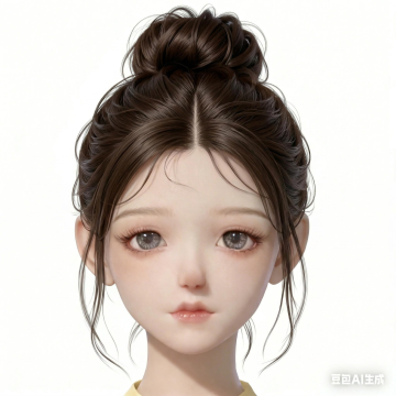 软3D风卡通少女,甜美可爱,紫色渐变背景,珍珠配饰增添优雅。