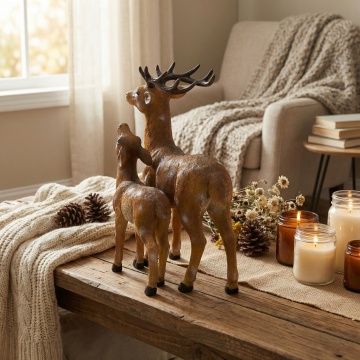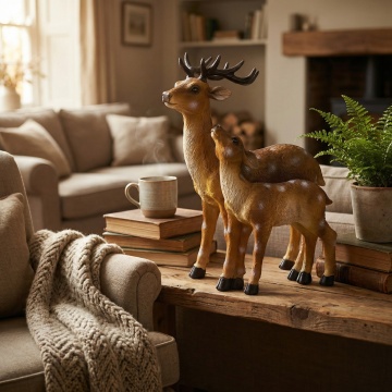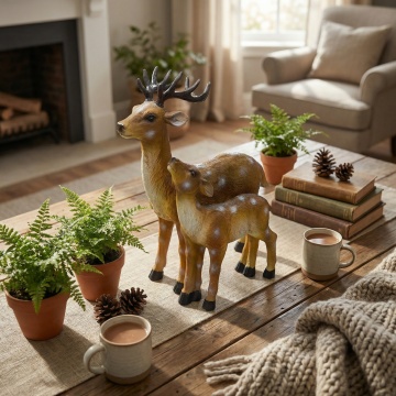 毛线编织的萌鹿,软3D质感搭配微缩艺术场景,梦幻雪景中点缀水晶与小树,充满可爱、温馨的节日氛围。