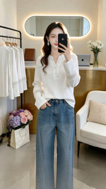 简约主义风格,黑色缎面质感衬衫,优雅垂坠,袖口珍珠点缀,融合时尚与商务感,尽显高级气质。