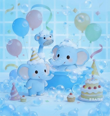 3D卡通风格,拟人化可爱大象家族,清新自然背景,生动活泼。
