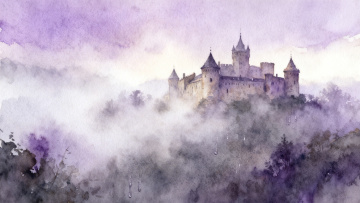 一幅印象派风格的户外风景画,画面中是连绵起伏的丘陵地带,山坡上覆盖着茂密的深绿色森林,林间点缀着几棵开满粉色花朵的樱花树,远处的天空呈现出柔和的粉紫色晚霞,云朵被染成了温暖的橙红色,山脚下有一片宁静的湖泊,湖面倒映着天空和岸边的景色,湖边生长着一些紫色的鸢尾花,整体色调温暖而梦幻,笔触奔放且富有动感,营造出一种浪漫而宁静的户外氛围。